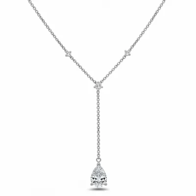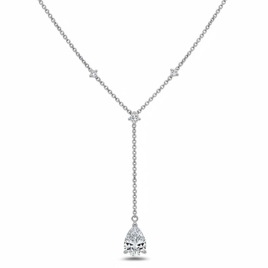 The perfect accompaniment to any formal V-neck ensemble, this Y-Lariat necklace delicately traces the collarbone and drops into a mesmerizing focal point. Crafted in lustrous 18KT white gold, the design is optimized to flatter the deep neckline, providing an elegant vertical line of brilliance. It features high-quality VVS diamonds, ensuring maximum sparkle and sophistication for the wearer. This piece is the epitome of luxurious, specialized styling for evening wear.