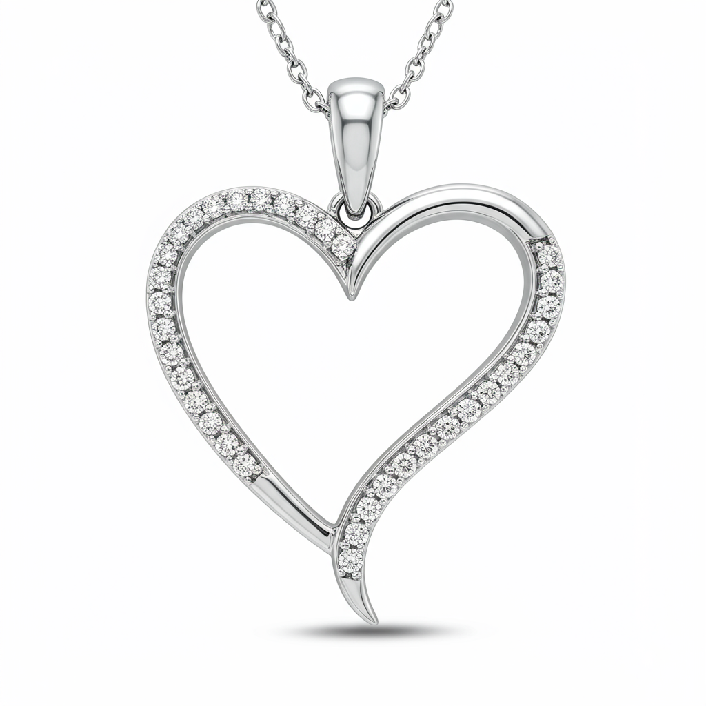 The Silver Heart Necklace is a timeless testament to enduring affection, meticulously crafted in luxurious 18KT white gold. This iconic pendant features a voluminous heart silhouette, entirely encrusted with a seamless cascade of brilliant round diamonds. The micro-pave setting maximizes light return, ensuring a captivating sparkle that catches the eye from every angle. Suspended from a delicate yet durable chain, this piece serves as the perfect romantic gift or a sophisticated addition to any high-jewelry collection.