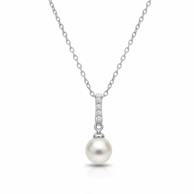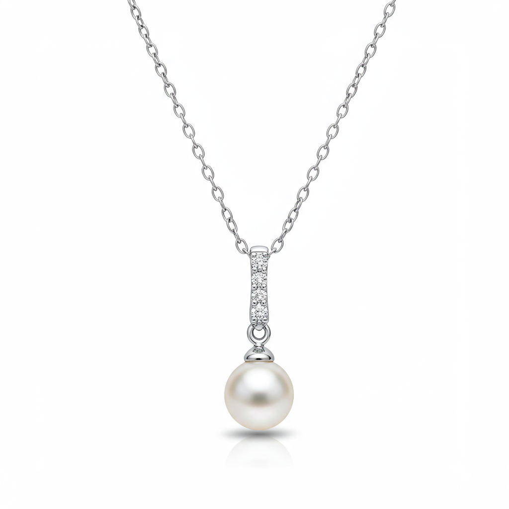 This exquisite women's pearl necklace embodies timeless sophistication, coupling the cool luster of 18KT white gold with the organic beauty of a flawless Akoya pearl drop. The pendant bail is meticulously set with brilliant-cut VVS diamonds, adding a subtle sparkle that enhances the pearl's radiance. Designed for formal wear or elegant everyday accessorizing, this piece is a testament to classic jewelry artistry and enduring grace.