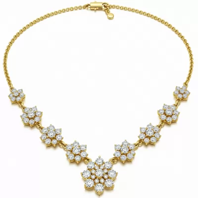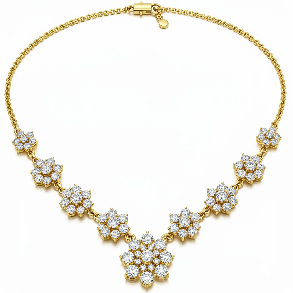 Experience understated luxury with this exquisite 15-gram gold necklace, meticulously crafted in rich 18KT yellow gold. The design features finely detailed clusters of brilliant-cut diamonds seamlessly integrated into the delicate chain link structure. This piece captures light beautifully, offering a sophisticated shimmer suitable for both everyday elegance and special evening wear. Its balanced weight ensures comfort while providing the substantial feel of true high jewelry craftsmanship.