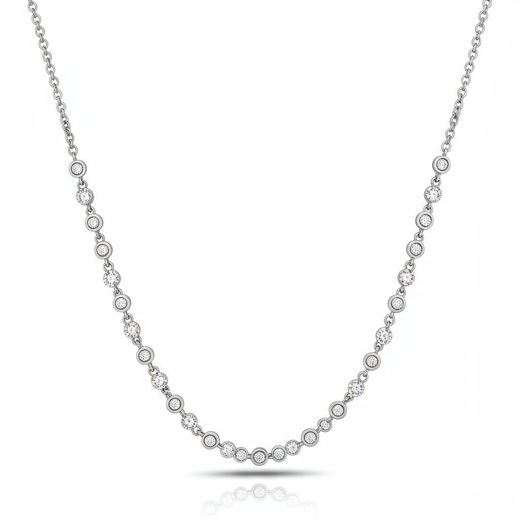 This elegant 18KT white gold chain necklace exemplifies refined simplicity, designed for the modern woman. Featuring delicate links accented by strategically placed micro-pave diamond stations, it captures light with exceptional brilliance. The VVS clarity diamonds ensure optimal sparkle, making this piece perfect for sophisticated daily wear or layering with other necklaces. This timeless addition symbolizes enduring grace and premium craftsmanship, setting a new standard for fine jewelry.