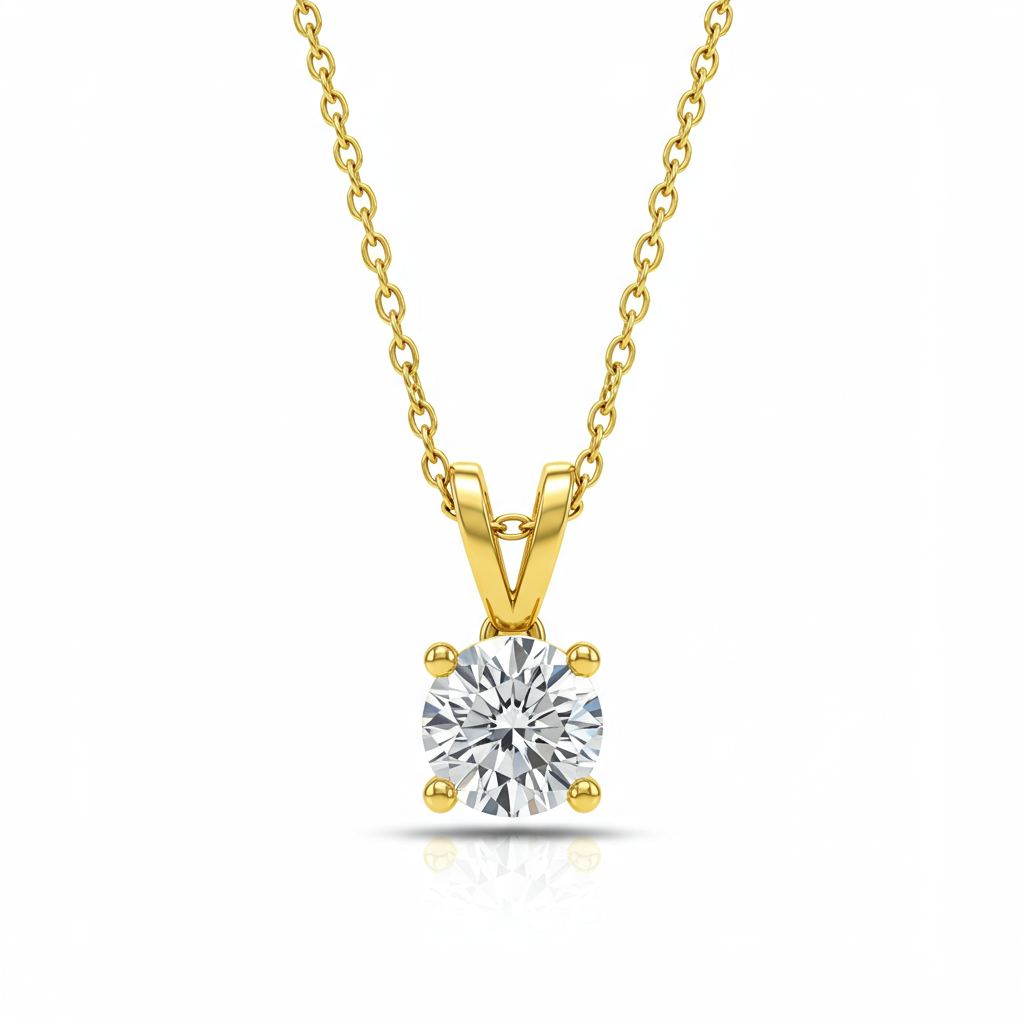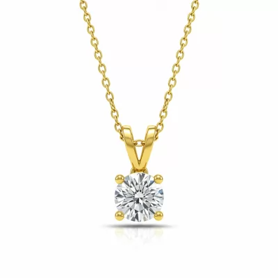 The Golden Colour Necklace is an exquisite tribute to classic elegance, defined by its rich 18KT yellow gold setting. This luxurious piece features a brilliant 0.50ct round diamond, held securely in a refined prong setting that maximizes light return. Subtle accent diamonds adorn the bail, adding a refined sparkle along the delicate chain. It serves as the perfect statement accessory for both daily wear and sophisticated evening occasions, offering timeless glamour and high-quality craftsmanship.