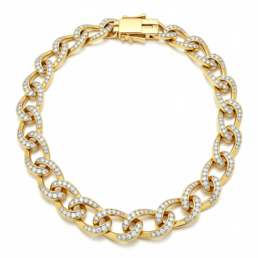 The Senco Gold Necklace is a breathtaking testament to refined elegance and luxurious craftsmanship. Expertly rendered in warm 18KT yellow gold, this piece features fluid, interconnected links meticulously adorned with brilliant diamonds. It serves as a striking centerpiece, draping gracefully along the collarbone with unparalleled sparkle. This necklace is an ideal choice for celebrating life’s most significant achievements and moments.