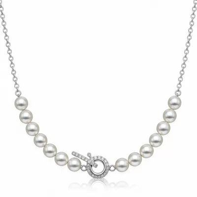 The simple pearl necklace designs embodies timeless elegance and refined minimalism. It features a delicate strand of luminous Akoya pearls, perfectly graduated for a fluid drape. The secure lobster clasp is subtly accented with five micro-pave VVS diamonds set in lustrous 18KT white gold. This piece is designed for effortless daily wear, offering a touch of classic sophistication and heritage beauty to any ensemble.