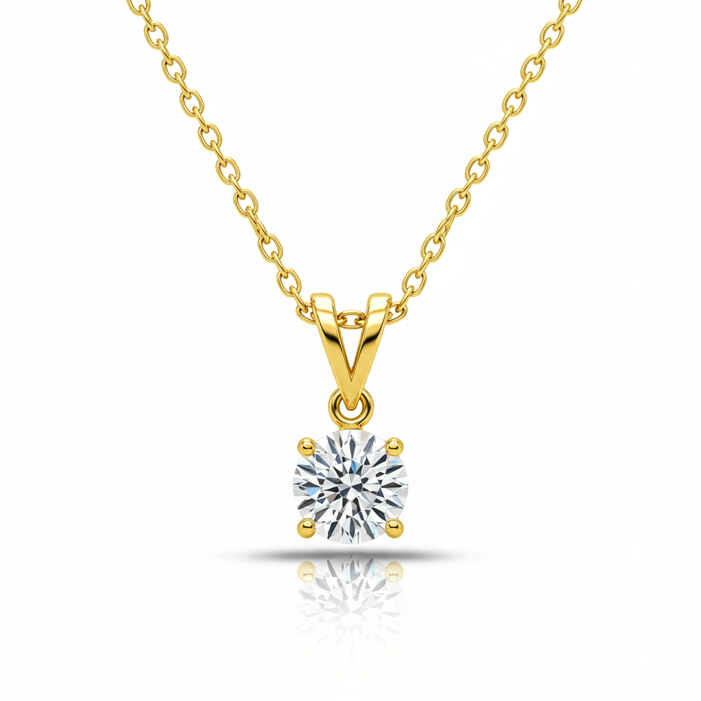 A symbol of pure elegance, this delicate gold necklace is designed to capture the light and the heart. Featuring a brilliant-cut solitaire diamond set in fine 18KT yellow gold, it provides a timeless sparkle perfect for daily wear or special occasions. The minimalist setting ensures the focus remains entirely on the breathtaking clarity and fire of the central stone. This refined piece makes an unforgettable gift, symbolizing everlasting affection and grace suitable for any young girl.
