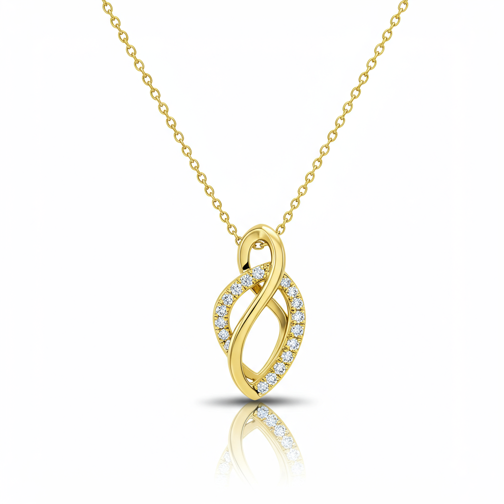 This modern light weight gold necklace design is the epitome of everyday luxury. Crafted in radiant 18KT gold, the delicate geometric pendant features meticulously set VVS brilliant round diamonds. Its streamlined aesthetic provides exceptional comfort and wearability, making it the perfect statement piece for sophisticated daily use. This necklace embodies contemporary elegance while remaining effortlessly timeless.