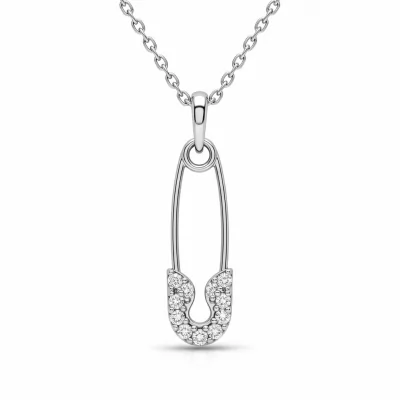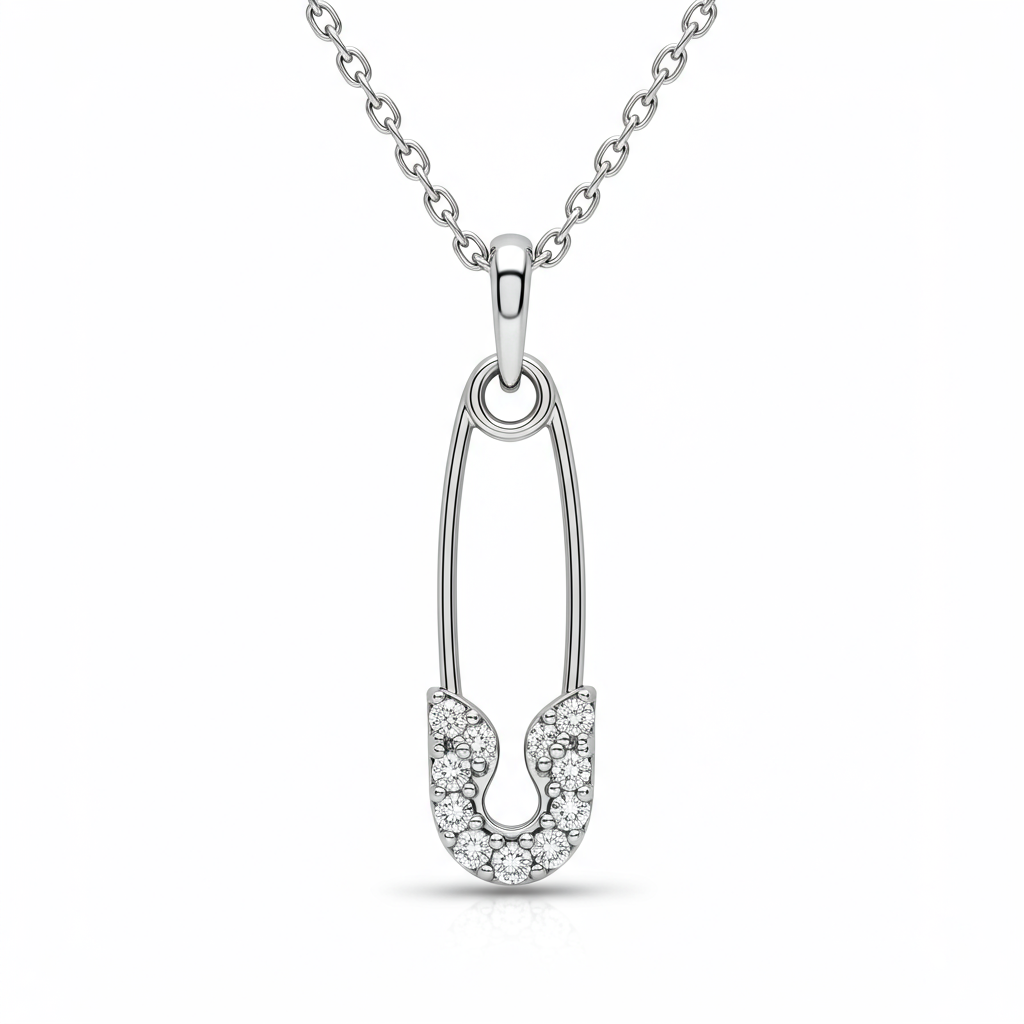 The Safety Pin Necklace reimagines an iconic staple as a symbol of bold, rebellious elegance. Crafted in radiant 18KT white gold, this piece features a meticulously detailed safety pin design, pavé-set with brilliant VVS diamonds. Suspended from a delicate yet strong chain, the design captures an effortless modernity perfect for layering or making a singular statement. This necklace offers a sharp, distinctive edge to contemporary fine jewelry collections.