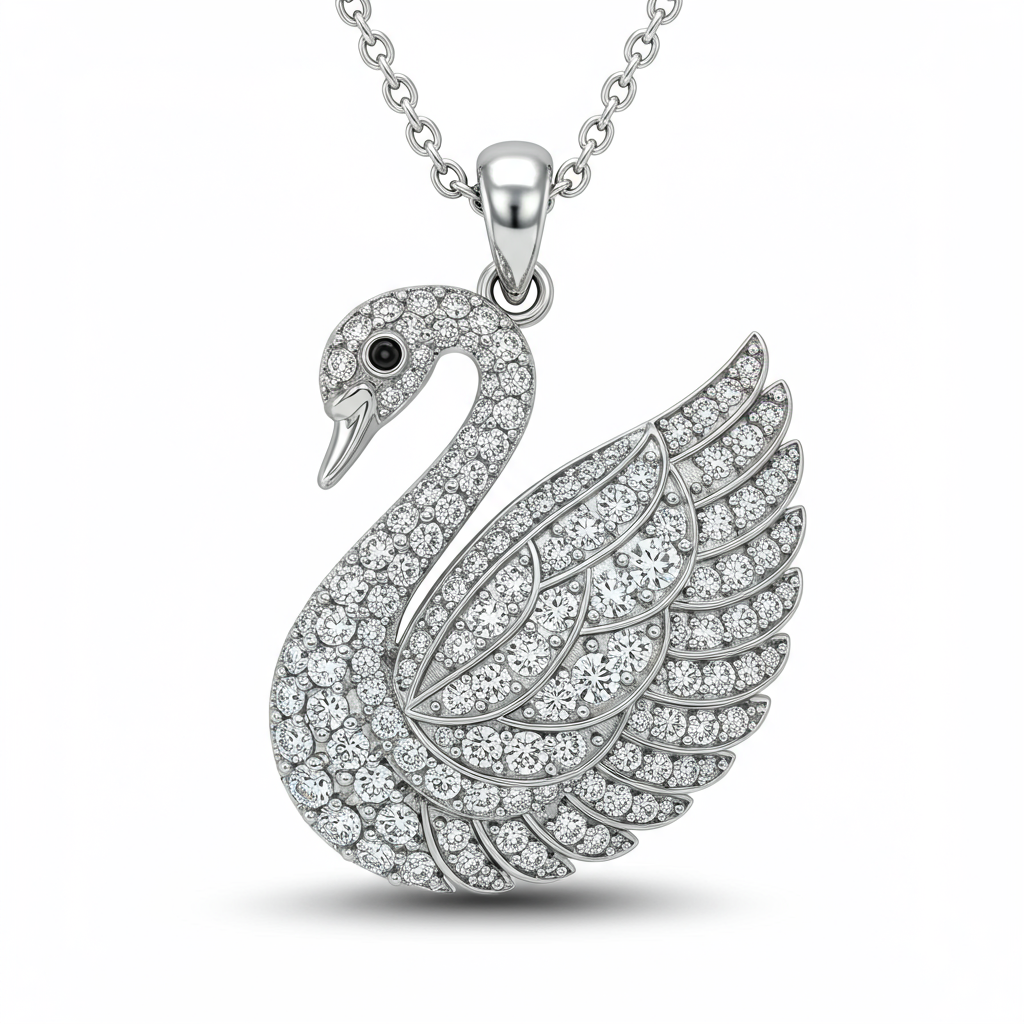 The Swan Necklace captures the sublime grace and elegance of its namesake, meticulously crafted in radiant 18KT white gold. This breathtaking pendant features a delicate silhouette adorned with high-quality VVS brilliant-cut diamonds, sparkling brilliantly to mimic the shimmer of water. It symbolizes purity, fidelity, and timeless beauty, making it a spectacular statement piece for any sophisticated collection. This exquisite design ensures that the wearer embodies classic luxury with every movement.