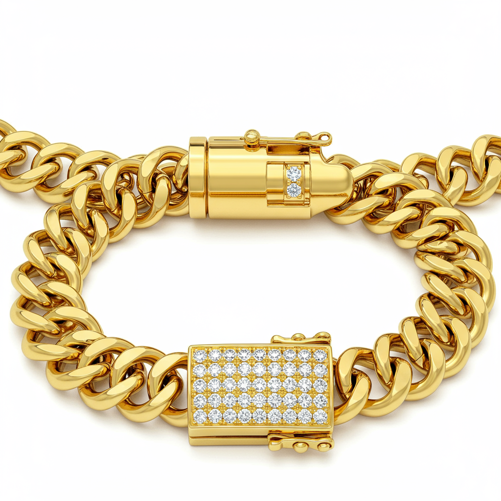 This magnificent 30-gram necklace epitomizes luxurious craftsmanship and timeless elegance. Forged in radiant 18KT yellow gold, its substantial weight offers a distinguished drape suitable for statement wear. The intricate design features finely articulated links, subtly accented with brilliant-cut VVS diamonds set into the central feature or clasp. This piece is an investment in enduring style, showcasing superior metal purity and diamond quality. It is perfect for marking life's most significant milestones or as a cherished heirloom.