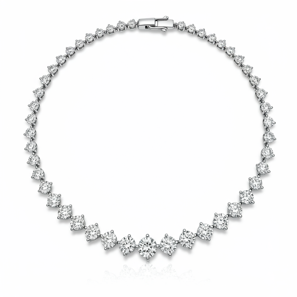 The Gale Ka Necklace is a breathtaking expression of modern artistry, meticulously crafted in radiant 18KT white gold. This diamond choker features a continuous stream of prong-set VVS brilliant round diamonds, designed to drape elegantly and catch the light from every angle. Its flexible structure ensures a comfortable fit while delivering maximum sparkle. This piece is the epitome of high glamour, perfect for grand evening affairs and marking unforgettable milestones.