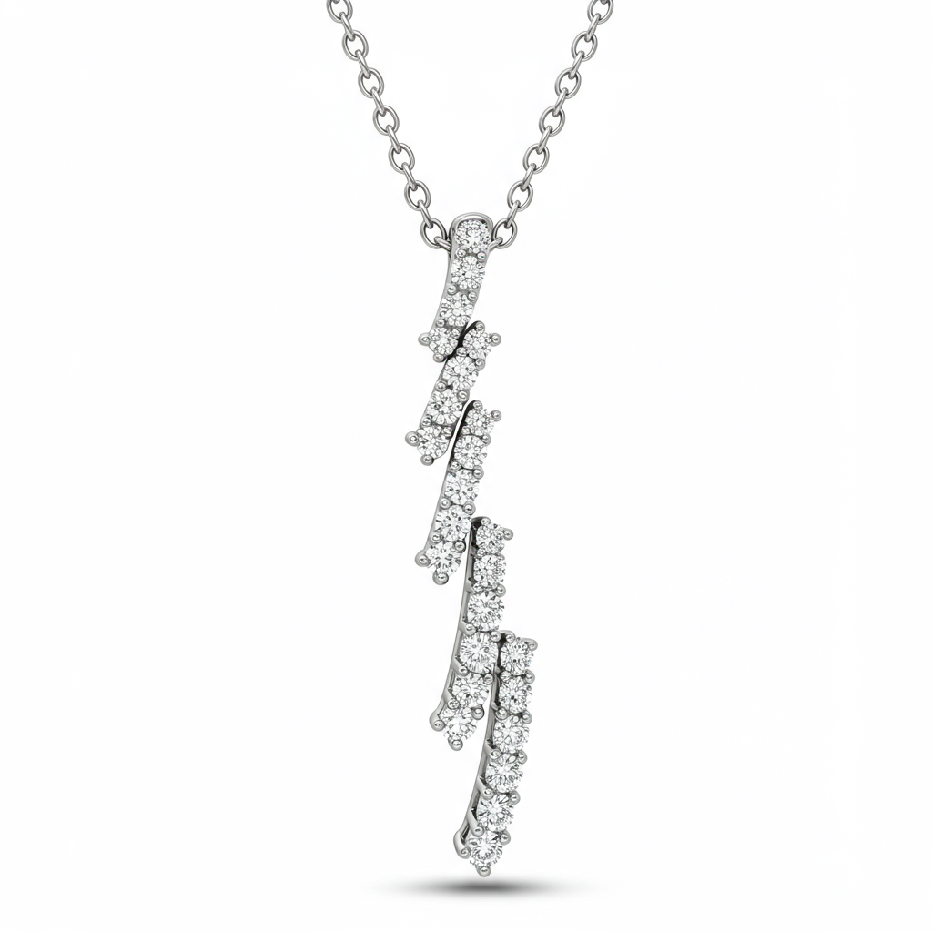 The Necklace Stand pendant embodies architectural elegance, featuring a bold, vertical drop design suspended from a delicate chain. Crafted in gleaming 18KT white gold, this piece utilizes precise tension settings to showcase brilliant VVS diamonds in a cascade of light. Its structural form draws the eye, offering a modern reinterpretation of classic high jewelry. This striking lariat piece is the ultimate statement of sophisticated luxury and contemporary design.