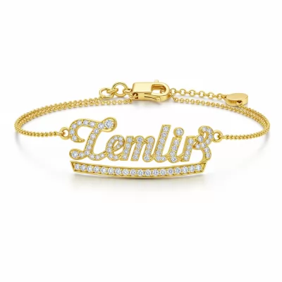 The Custom Name Bracelet transforms personal identity into a timeless treasure. Crafted in radiant 18KT gold, this delicate yet substantial piece features a bespoke nameplate that serves as the centerpiece. It is meticulously adorned with micro-pave diamonds of VVS clarity, adding a dazzling layer of sophistication. This heirloom-quality bracelet makes an unforgettable statement, celebrating individuality and connection.