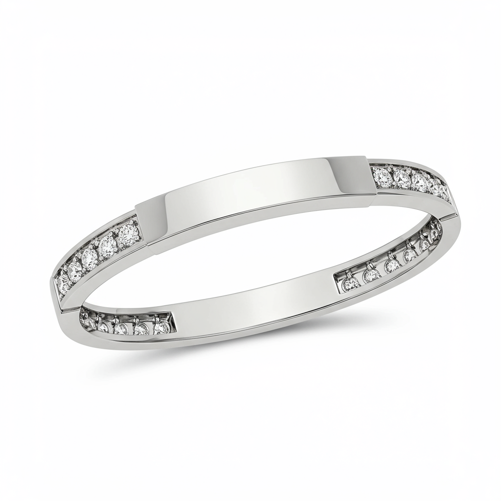 The ultimate statement of masculine elegance, this personalized ID bar bracelet is crafted from robust 18KT white gold. Its sleek, substantial design features a central bar, perfect for bespoke engraving, flanked by meticulously set VVS accent diamonds. The secure, polished clasp ensures comfort and durability for everyday wear. This bracelet seamlessly blends timeless style with modern customization, creating an enduring heirloom piece.