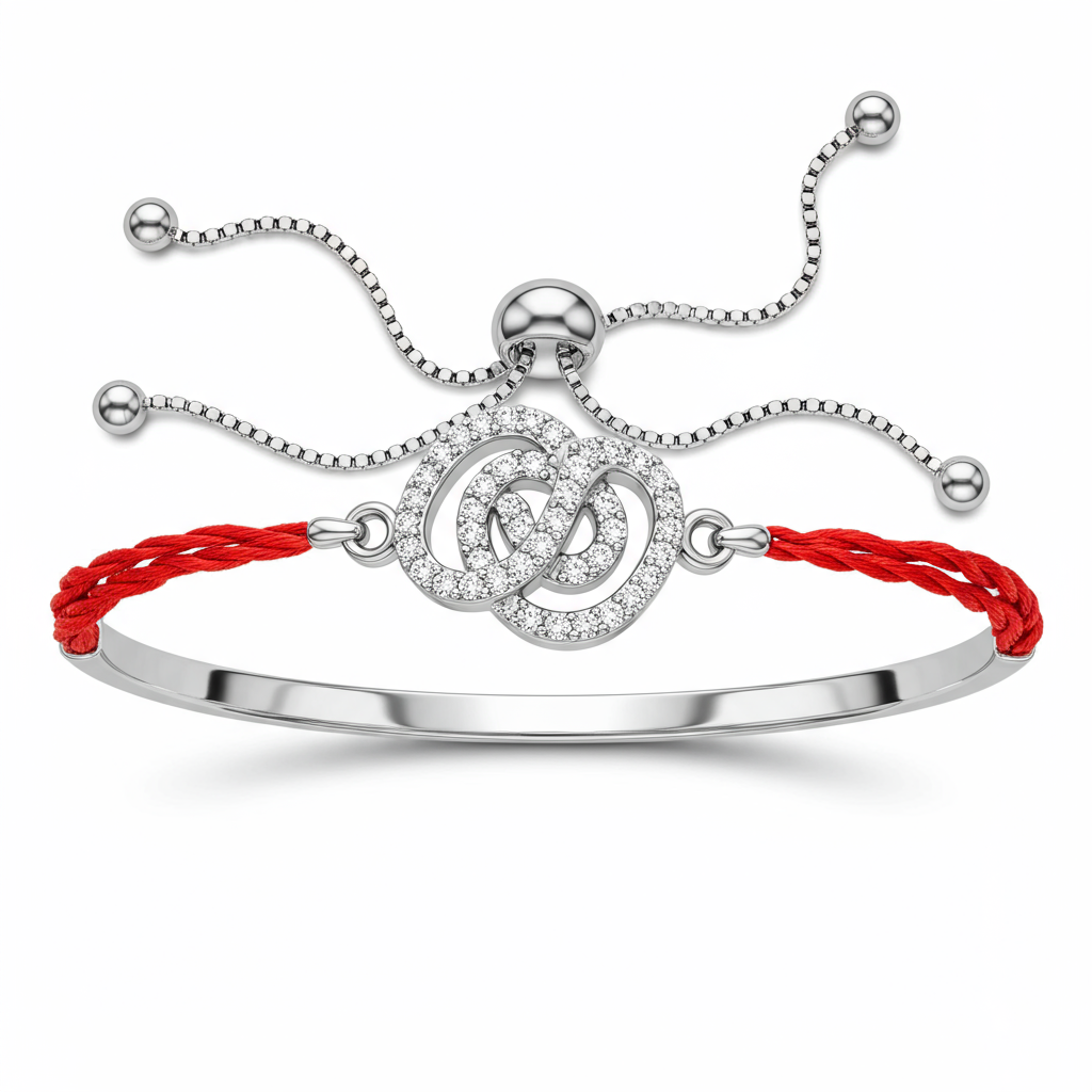 The Silver Rakhi Bracelet is a sophisticated expression of familial bond, merging traditional symbolism with modern luxury design. Crafted in luminous Sterling Silver, this adjustable bracelet features a central motif meticulously set with brilliant VVS diamonds. The sleek, durable chain ensures comfort and longevity, making it an ideal piece for daily wear or festive occasions. It serves as an enduring symbol of affection, rendered in materials of exceptional quality.
