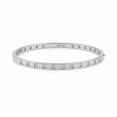 A unique and deeply personal piece, the Morse Code Bracelet translates a secret message into sparkling 18KT white gold and exquisite VVS diamonds. This minimalist design features delicate diamond-studded links representing 'dots' and polished gold bars representing 'dashes'. It serves as an elegant, contemporary keepsake, perfect for memorializing significant dates or initials. The secure lobster clasp ensures comfortable, everyday wearability while maintaining its luxurious appeal.