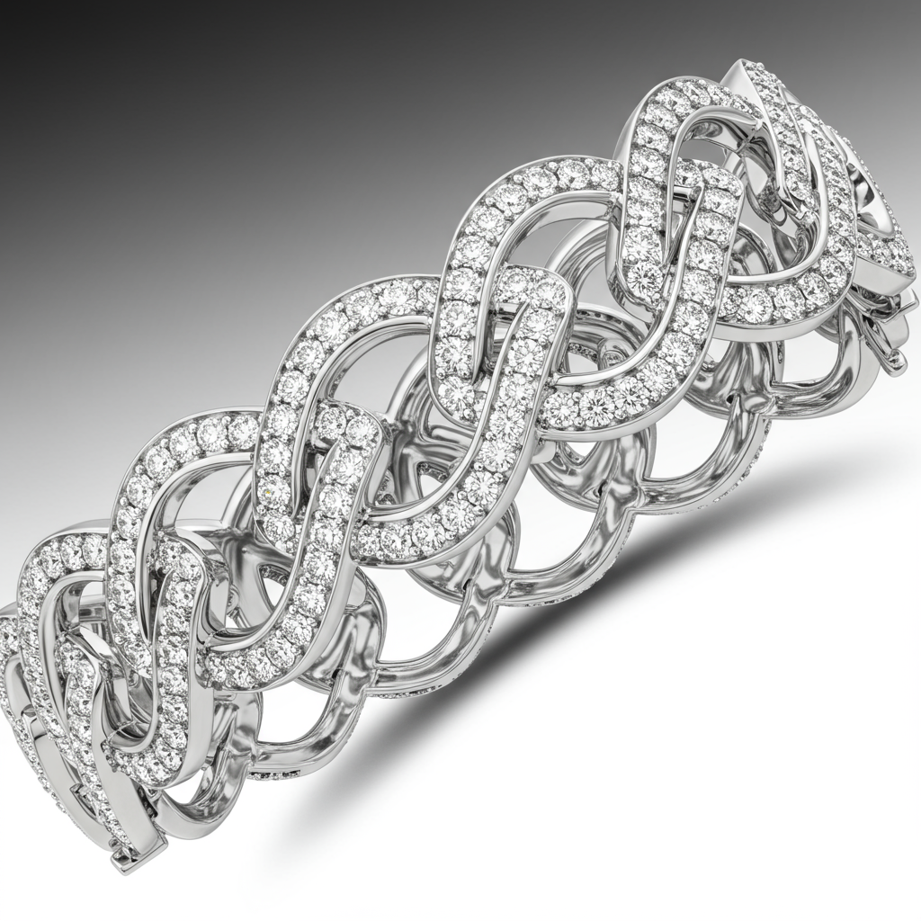 This exquisite infinity bracelet captures eternal style and sophisticated luxury. Crafted in radiant 18KT white gold, the continuous infinity links symbolize everlasting devotion and connection. Each curve is meticulously set with brilliant VVS quality round diamonds, creating a continuous sparkle that flows effortlessly around the wrist. This piece is a magnificent statement of modern elegance, designed for the woman who appreciates fine craftsmanship and timeless sentiment.