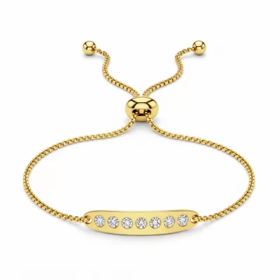 A truly delicate piece, this 18KT yellow gold bracelet is thoughtfully sized for a baby girl, making it an ideal gift for milestones like christenings or birthdays. The central plaque is adorned with five shimmering VVS diamonds, adding a gentle sparkle. Crafted with an adjustable chain mechanism, this design prioritizes safety, comfort, and security for the wearer. This beautiful accessory serves as a precious, tiny heirloom, symbolizing eternal love and protection.