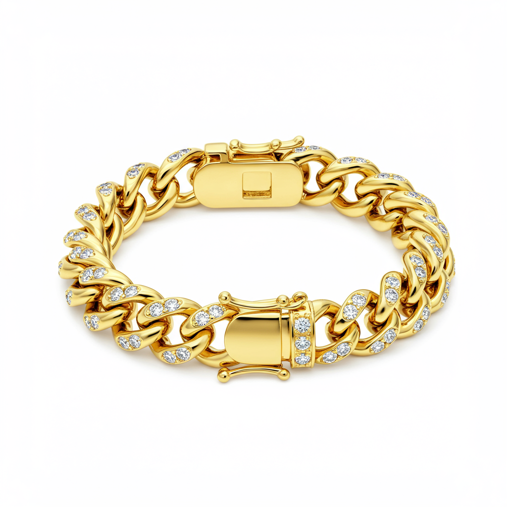 The gold plated bracelet epitomizes accessible luxury, crafted with a substantial sterling silver base and lavishly coated in thick 18K yellow gold plating. This elegant chain design is subtly adorned with brilliant VVS diamond accents, adding a touch of undeniable sparkle. Engineered for durability and daily wear, the bracelet offers the opulent aesthetic of solid gold at an exceptional value. It secures comfortably with a high-polish clasp, making it a versatile statement piece for any collection.