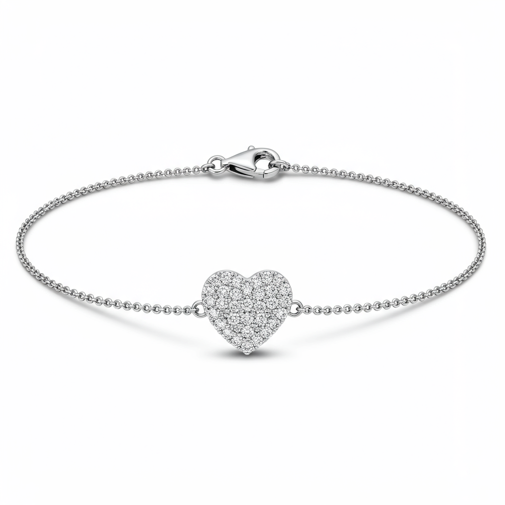The Heart Line Bracelet embodies timeless romance and exceptional craftsmanship. Centered on a delicate 18KT white gold chain is a beautifully sculpted heart charm, meticulously set with VVS diamonds in a micro-pave setting. This elegant piece captures the light with every movement, symbolizing eternal love and commitment. Secured with a robust lobster clasp, it offers both security and luxurious comfort. It is the perfect piece to celebrate an anniversary or significant milestone.