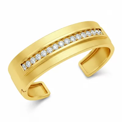 This commanding men's bracelet embodies strength and sophisticated design, crafted in luxurious 18KT yellow gold. Its solid cuff profile is accented by meticulous channel settings, showcasing a line of brilliant round-cut diamonds. Engineered for durability and comfort, this piece offers a perfect blend of high fashion and timeless masculine elegance. It serves as the ultimate statement accessory, suitable for both formal occasions and everyday power dressing.