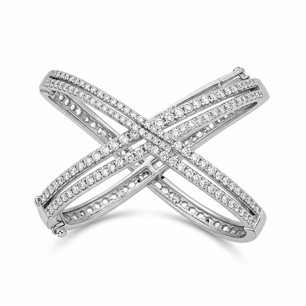 Celebrate eternal connection with the 'Couple Bracelets Silver' set, meticulously crafted in radiant 18KT white gold. This striking pair features interlocking geometric designs, symbolizing unity and enduring love. Each bracelet is delicately hand-set with brilliant round VVS diamonds, catching light with every movement. A sophisticated, contemporary expression of partnership, this set transcends ordinary jewelry to become a cherished heirloom.