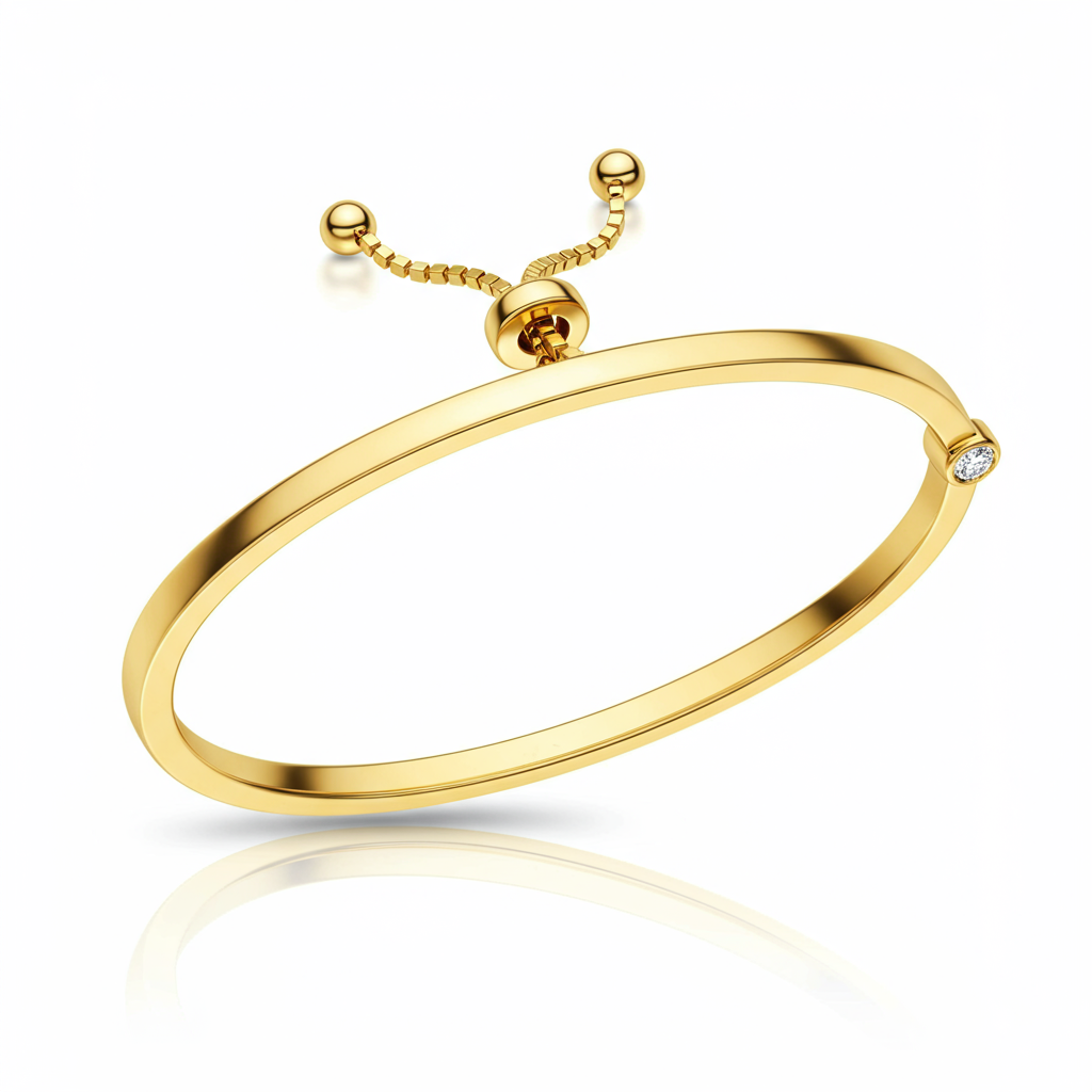 A precious gift to commemorate life's most cherished beginnings, this 18KT yellow gold bracelet is designed specifically for infant comfort and safety. Its smooth, highly polished surface ensures a gentle feel against delicate skin, while the secure, adjustable clasp provides a perfect fit for growing wrists. Featuring a timeless, elegant design and a subtle diamond accent, this piece is a beautiful heirloom. It symbolizes enduring love and prosperity, making it the perfect accessory for a baby boy.