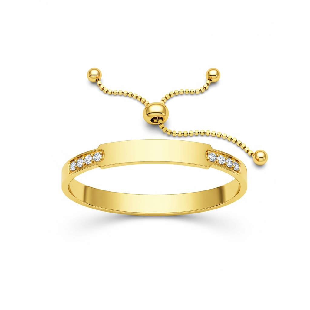 The Kids Gold Bracelet is an exquisite piece of heirloom jewelry, perfect for celebrating life's precious milestones. Crafted in luminous 18KT yellow gold, this adjustable bracelet features a smooth central plaque ideal for personalized engraving. The sturdy chain ensures comfort and security for active wearers. It serves as a beautiful keepsake that can be cherished for generations, symbolizing timeless love and protection.