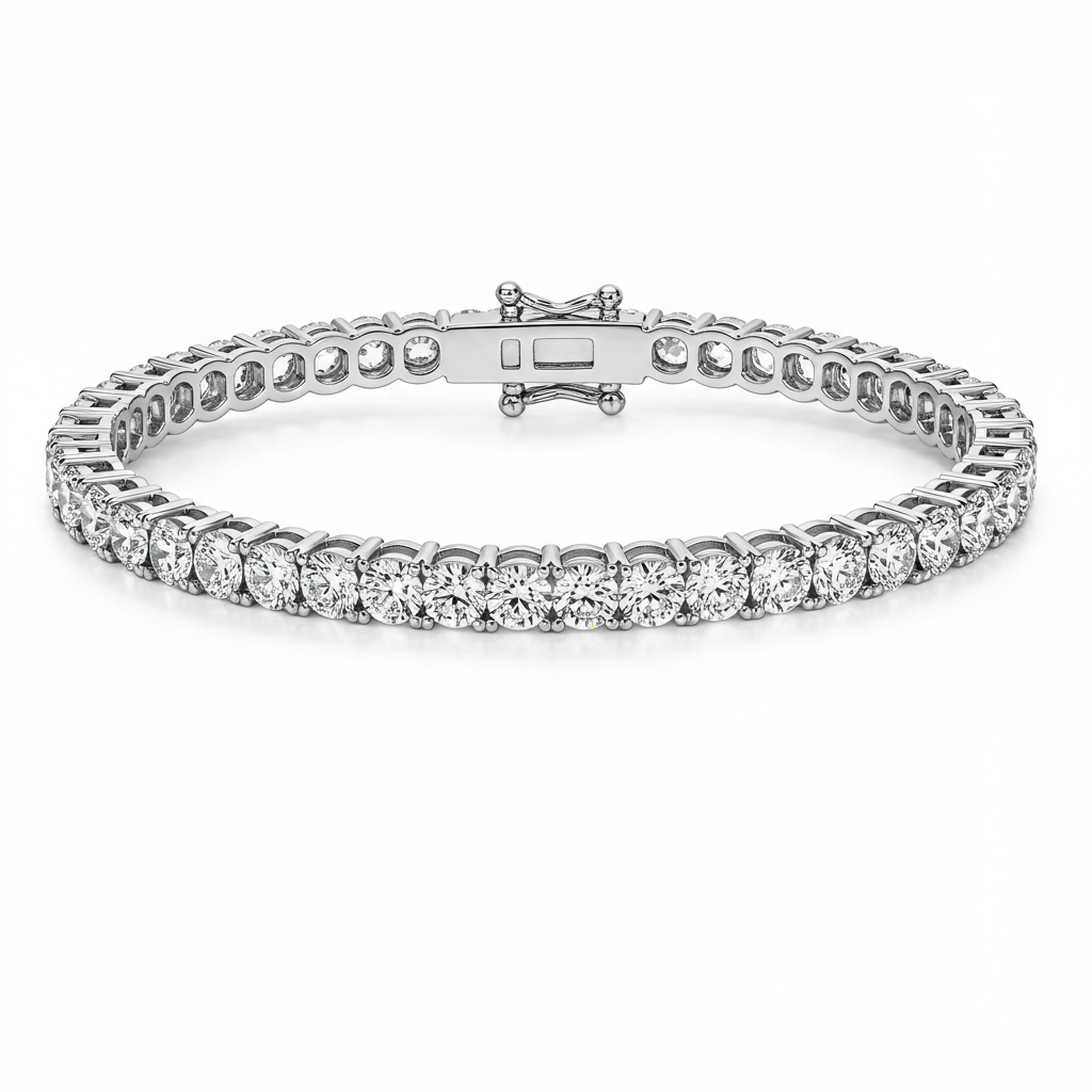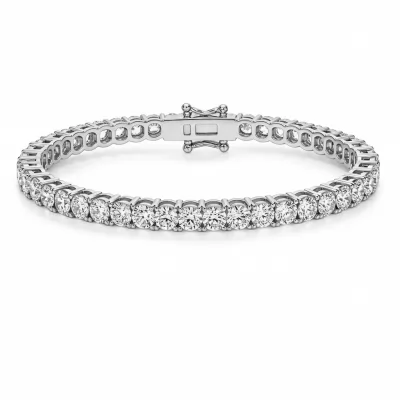 The white bracelet epitomizes timeless elegance, featuring a continuous line of perfectly matched, brilliant round diamonds. Set in lustrous 18KT white gold, each VVS clarity diamond catches the light with unparalleled intensity, creating a mesmerizing sparkle. This classic tennis bracelet design is secured by a robust box clasp and safety latch. It serves as the ultimate statement piece for formal events or sophisticated daily wear, promising generational endurance and style.