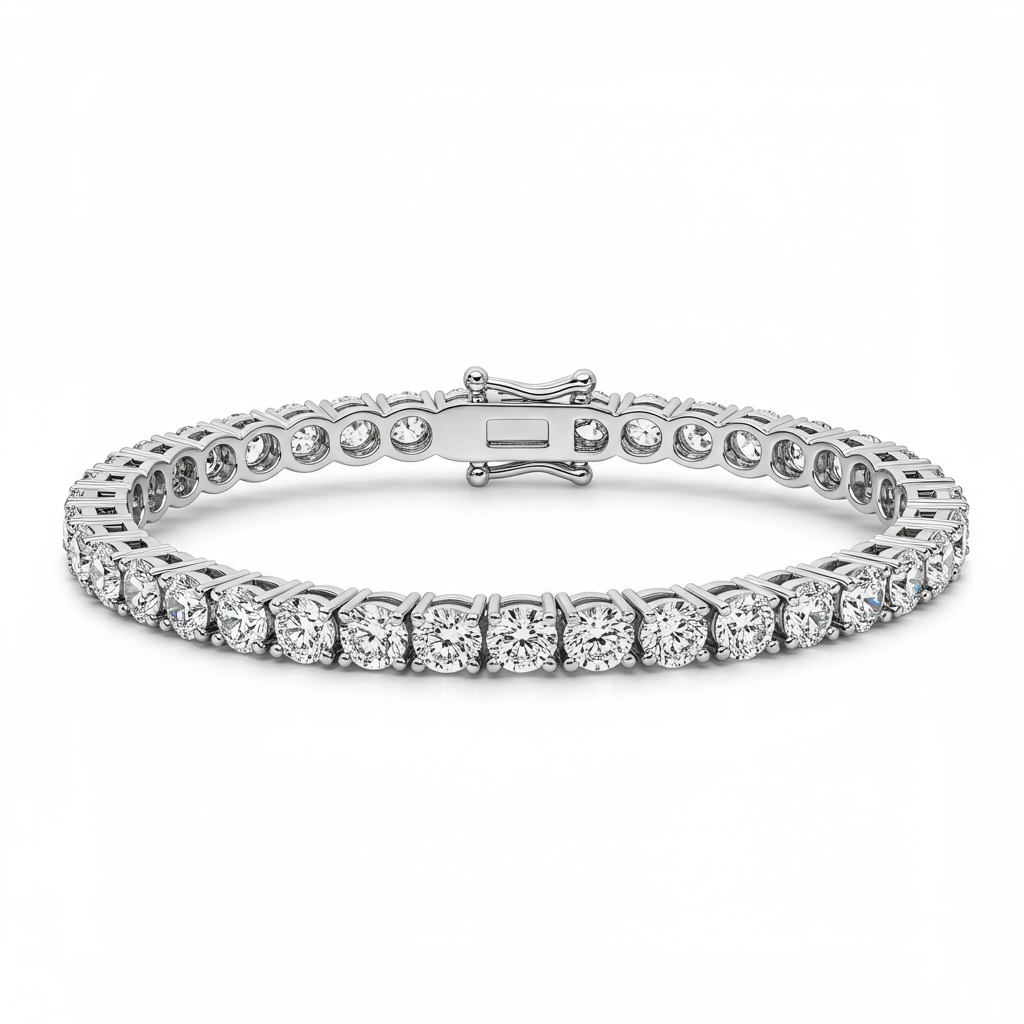 A masterpiece of flexibility and sparkle, this diamond line bracelet exemplifies timeless elegance and modern craftsmanship. Set in luxurious 18KT white gold, the design features meticulously selected VVS clarity diamonds seamlessly linked to create a continuous band of brilliance. The secure hidden box clasp ensures comfort and safety, making it perfect for daily wear or grand occasions. This bracelet transitions effortlessly from an office staple to an evening statement piece, embodying refined luxury.