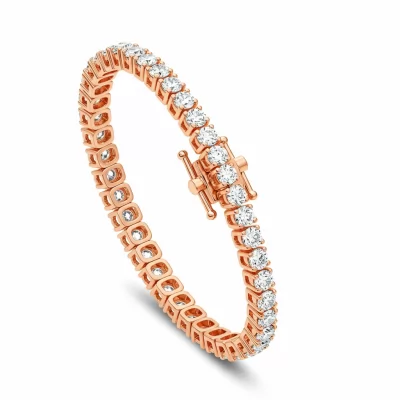 This exquisite rose gold bracelet embodies timeless sophistication and modern luxury. Crafted in radiant 18KT rose gold, the flexible chain is meticulously set with 2.20 carats of sparkling VVS round brilliant diamonds. Its continuous line of perfectly matched stones creates an uninterrupted circle of fire and brilliance around the wrist. An elegant and secure box clasp ensures comfortable wear, making this piece perfect for both daily glamour and special occasions.