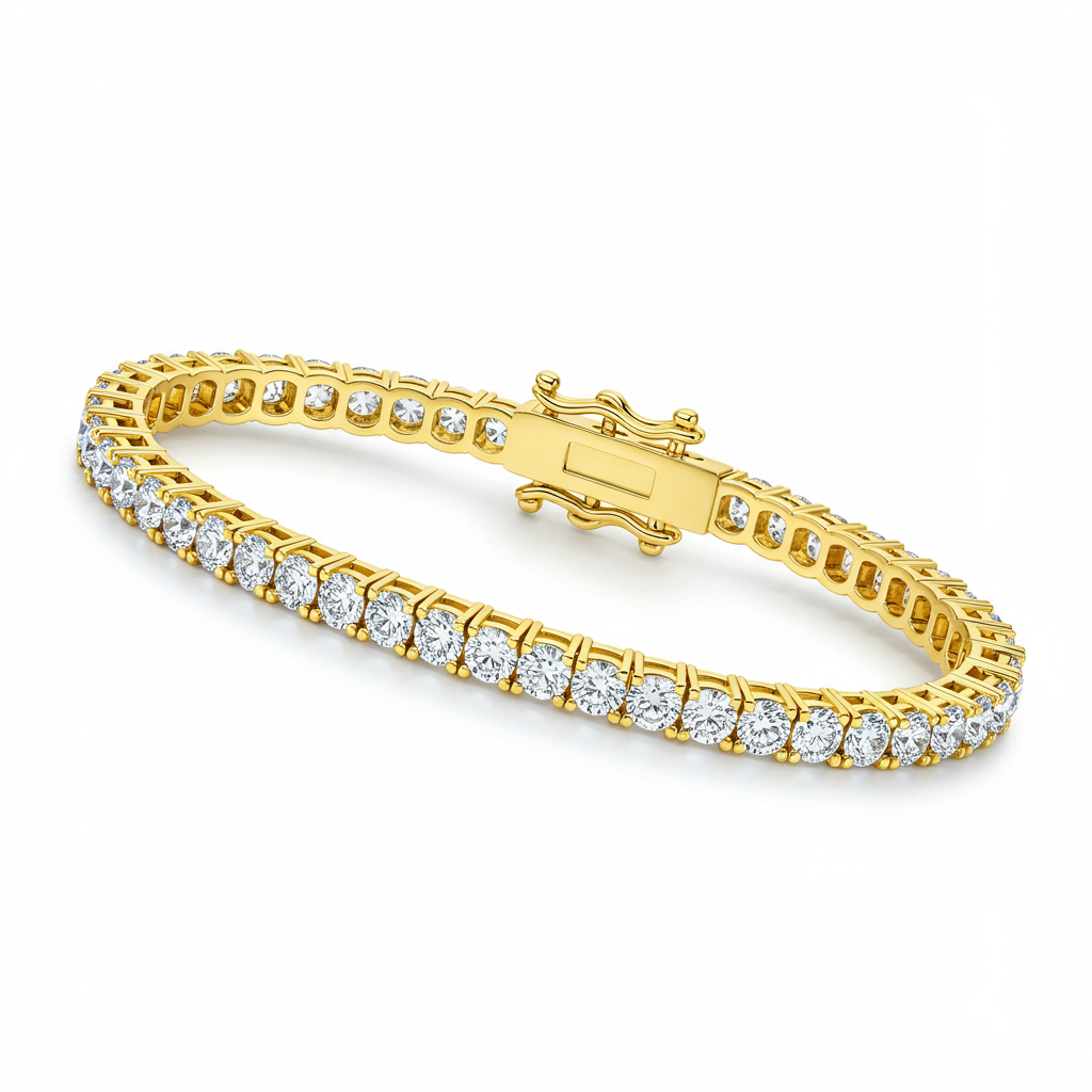 This exquisite 18KT yellow gold bracelet redefines classic luxury, featuring a continuous line of brilliant-cut diamonds. Each stone is meticulously set to maximize light return, creating an unbroken stream of sparkle around the wrist. The flexible articulated design ensures supreme comfort and a flawless drape, making it ideal for daily wear or grand occasions. Secured by a hidden box clasp with dual safety catches, this bracelet is an enduring symbol of grace and sophistication. It represents the pinnacle of craftsmanship in women's fine jewelry.