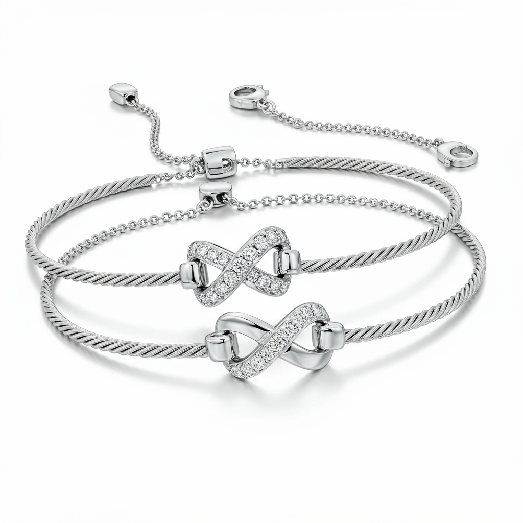 The Long Distance Couple Bracelets are a sophisticated symbol of unwavering connection, designed for those separated by miles but united in spirit. Crafted in luxurious 18KT white gold, each bracelet features a unique interlocking link design, seamlessly merging modern aesthetic with profound meaning. A central pavé-set diamond element adds a subtle flash of brilliance, signifying the sparkle of your shared moments. This elegant set serves as a constant, tangible reminder of commitment, making it the perfect gift for keeping loved ones close at heart.