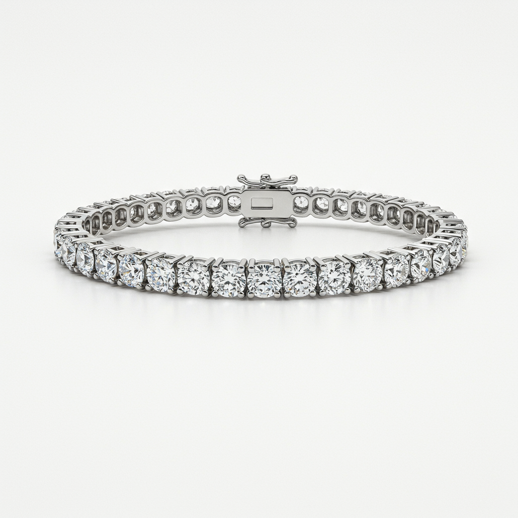 This exquisite diamond tennis bracelet defines timeless elegance, meticulously crafted in radiant 18KT white gold. Featuring a continuous line of perfectly matched, brilliant round diamonds, it captures and reflects light with unparalleled intensity. Each VVS clarity stone is secured in a sleek, four-prong setting, ensuring maximum sparkle and durability. This bracelet is the quintessential luxury accessory, designed to transition effortlessly from daytime sophistication to evening glamour. A secure clasp guarantees comfortable and confident wear for decades to come.