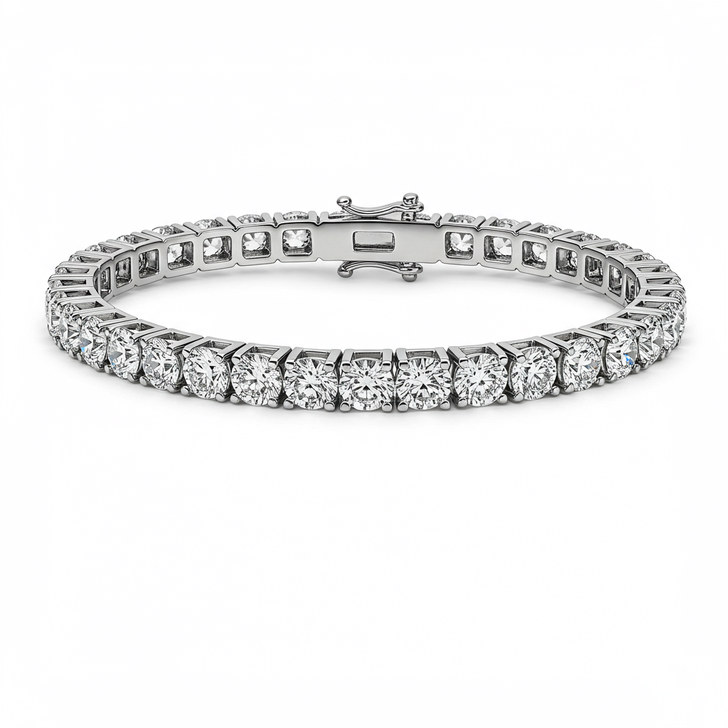 Elevate your sophistication with this exquisite platinum tennis bracelet, a piece that captures light with unparalleled brilliance. This classic design features a continuous stream of perfectly matched, high-clarity round diamonds secured in meticulous four-prong settings. Crafted from durable Platinum 950, this bracelet ensures both luxurious feel and lifetime wear. It is the definitive statement of timeless elegance, suitable for any significant occasion.