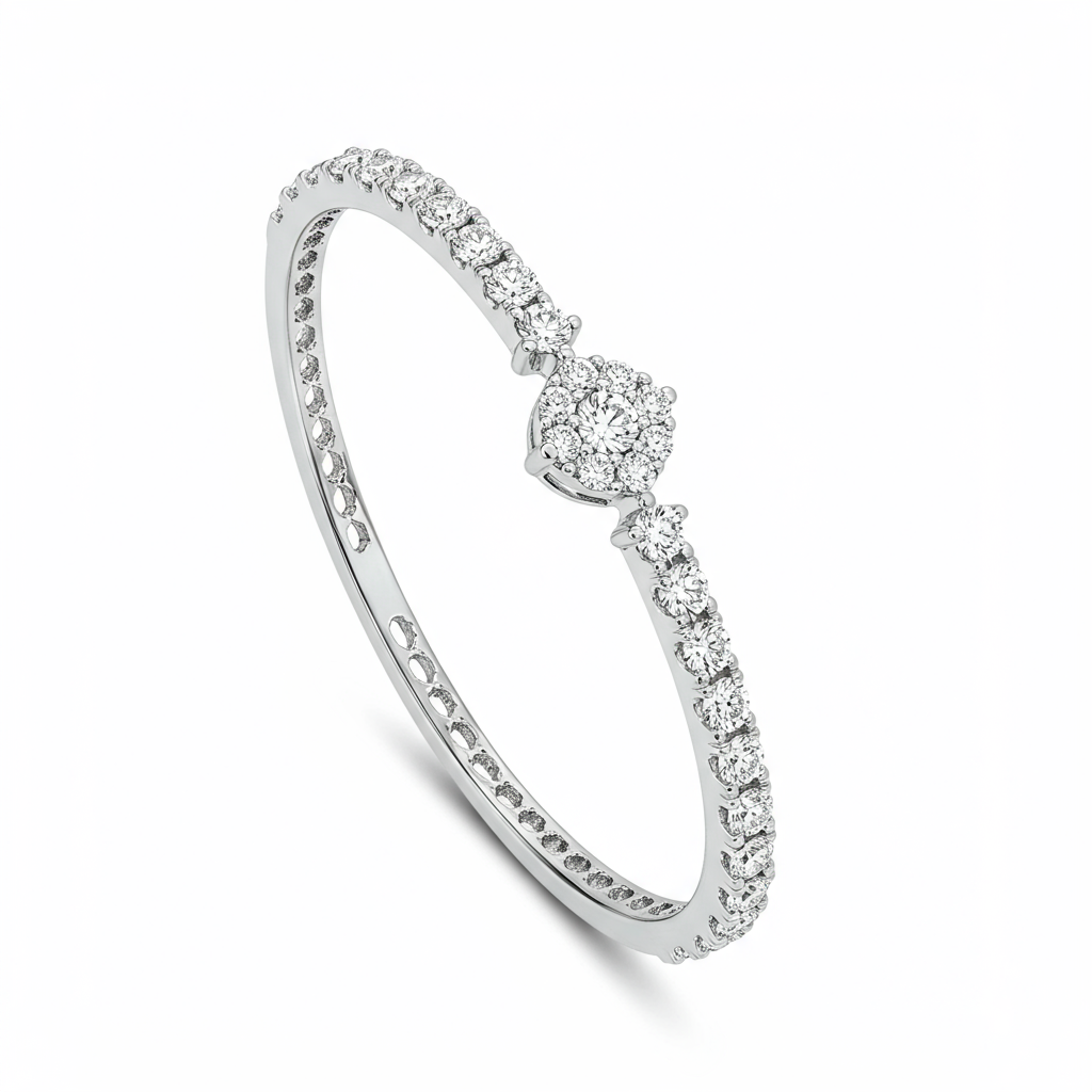The Ring Bracelet for women embodies sophisticated grace, merging the elegance of a delicate wrist bracelet with the intimacy of a finger ring. Crafted in radiant 18KT white gold, this hand harness features fluid lines entirely adorned with brilliant round VVS diamonds set in micro-pave. The adjustable design drapes effortlessly across the hand, creating a truly mesmerizing statement of high-fashion luxury. This modern masterpiece is designed for the woman who seeks unique, unforgettable jewelry.