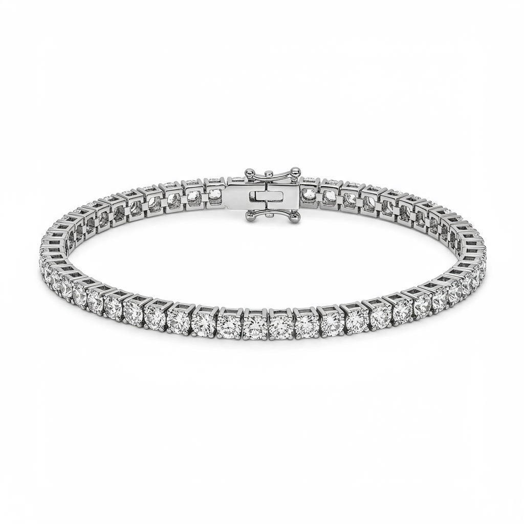 This exquisite tennis bracelet is the ultimate symbol of enduring affection, designed as a perfect token of love for a cherished girlfriend. Crafted in radiant 18KT white gold, it features a continuous line of meticulously matched, brilliant VVS G-color round diamonds. The flexible articulation ensures a comfortable drape on the wrist, while the robust, secure clasp guarantees safety during wear. This timeless piece offers extraordinary brilliance, making it an unforgettable and luxurious gift that elevates any ensemble.