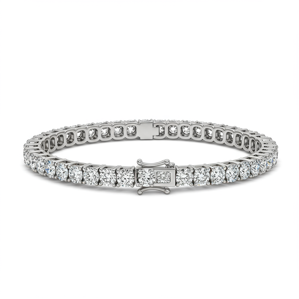 This magnificent silver bracelet epitomizes timeless elegance, featuring a continuous line of brilliant round diamonds meticulously set in polished 18KT white gold. Each VVS clarity stone is carefully selected for maximum fire and brilliance, ensuring the bracelet catches light from every angle. Its flexible structure drapes gracefully around the wrist, offering supreme comfort and dazzling sophistication. This piece serves as the ultimate statement of luxury, perfect for commemorating life's most significant milestones.
