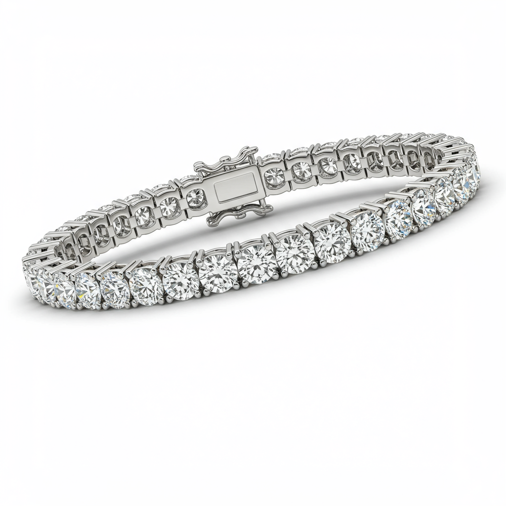 The Classic Tennis Bracelet embodies timeless elegance, featuring an unbroken stream of brilliant round diamonds. Crafted meticulously in luminous 18KT white gold, this piece guarantees a spectacular sparkle from every angle. Each VVS quality diamond is secured in a robust four-prong setting, ensuring maximum light reflection and enduring beauty. This essential accessory is designed for comfortable daily wear while providing a significant statement of luxury.