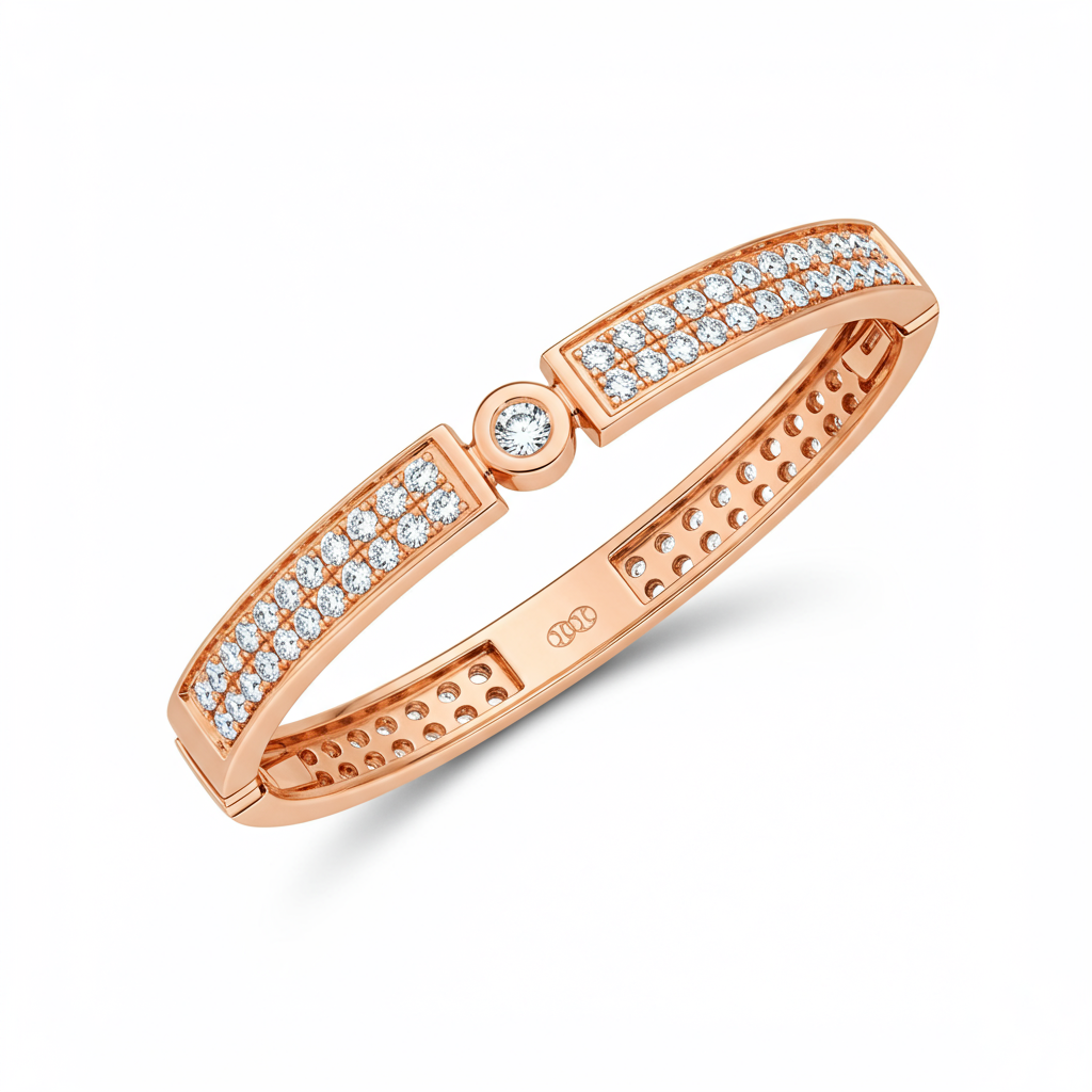 The Love Bracelet is an iconic symbol of enduring commitment and timeless style, meticulously crafted in luxurious 18KT Rose Gold. This exquisite bangle features the signature screw motif interspersed with brilliant round diamonds, symbolizing unbreakable bonds. Its elegant, streamlined profile ensures comfortable wear while making a powerful statement. Perfect for daily wear or stacking, this piece is designed to be cherished across generations.