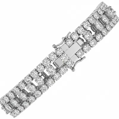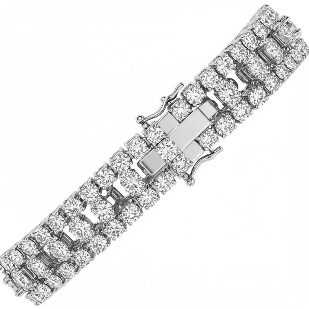 This magnificent tennis bracelet epitomizes timeless luxury, crafted meticulously in 18KT white gold. It features a continuous line of brilliant VVS round diamonds, individually secured in flawless four-prong settings. The flexible design ensures maximum comfort and movement, catching the light from every angle. This piece is the quintessential accessory for formal events or adding everyday glamour to your ensemble.