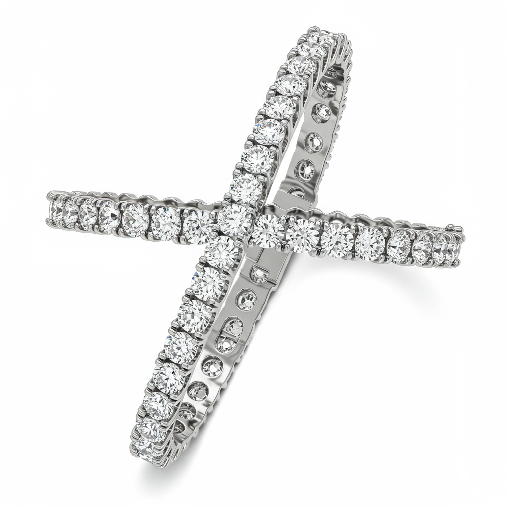 This exquisite diamond line bracelet is crafted from 18KT white gold, offering a timeless display of brilliance and sophistication. Featuring 115 meticulously set VVS round diamonds, it encircles the wrist with unparalleled sparkle. The secure box clasp ensures both comfort and safety, making it perfect for daily wear or grand evening events. This piece serves as a foundational element of any high-jewelry collection, embodying classic elegance for the modern woman.