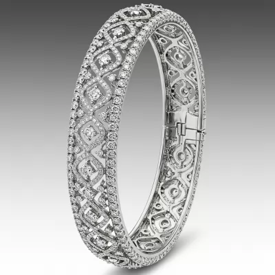 This exquisite women's bangle bracelet is a testament to sophisticated luxury, meticulously crafted in radiant 18KT white gold. Featuring continuous rows of brilliant VVS diamonds, the design captures light from every angle, creating unparalleled sparkle. Its secure yet fluid construction ensures comfortable wear for both daily elegance and grand occasions. This piece is a timeless investment, symbolizing grace and enduring style.