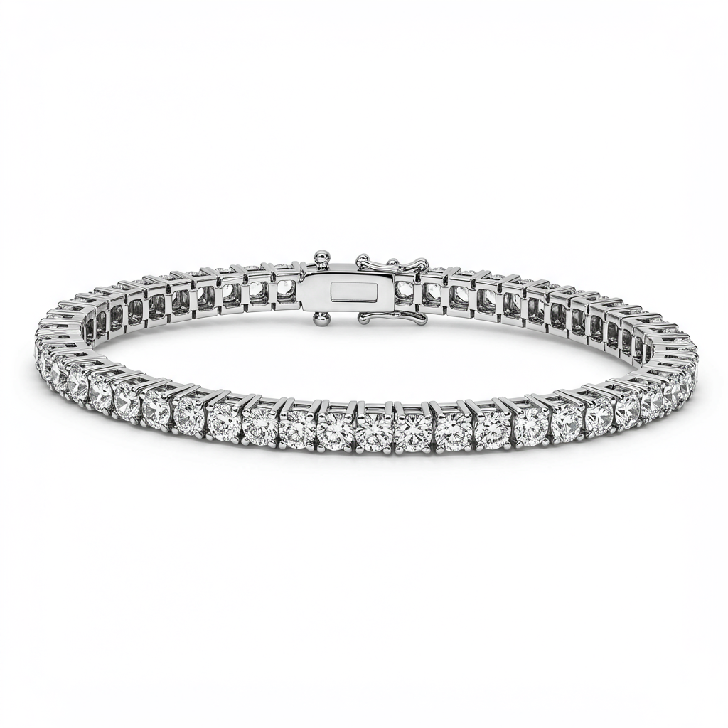 The Eternal Sparkle Tennis Bracelet epitomizes timeless elegance, designed for the modern woman who appreciates classic luxury. Crafted meticulously in luminous 18KT white gold, this piece features a continuous line of perfectly matched, brilliant round diamonds. Its flexible structure ensures maximum comfort and effortless drape around the wrist. This bracelet is an essential statement piece, radiating unmatched sophistication whether worn solo or layered.