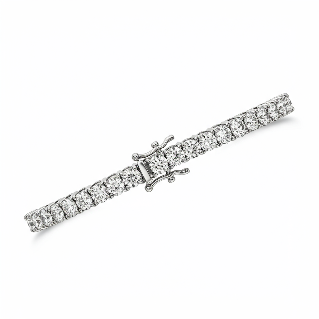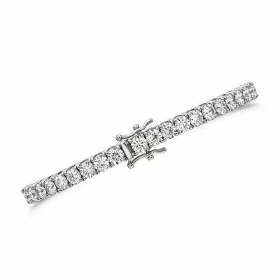 Experience unparalleled luxury with this meticulously crafted platinum bracelet. This classic tennis design features a continuous line of brilliant round diamonds, each selected for its exceptional VVS clarity and bright G-H color. Set in sturdy four-prong baskets, the stones maximize light reflection for dazzling brilliance. The secure clasp ensures comfort and safety, making this piece perfect for both daily wear and grand occasions.