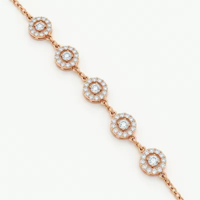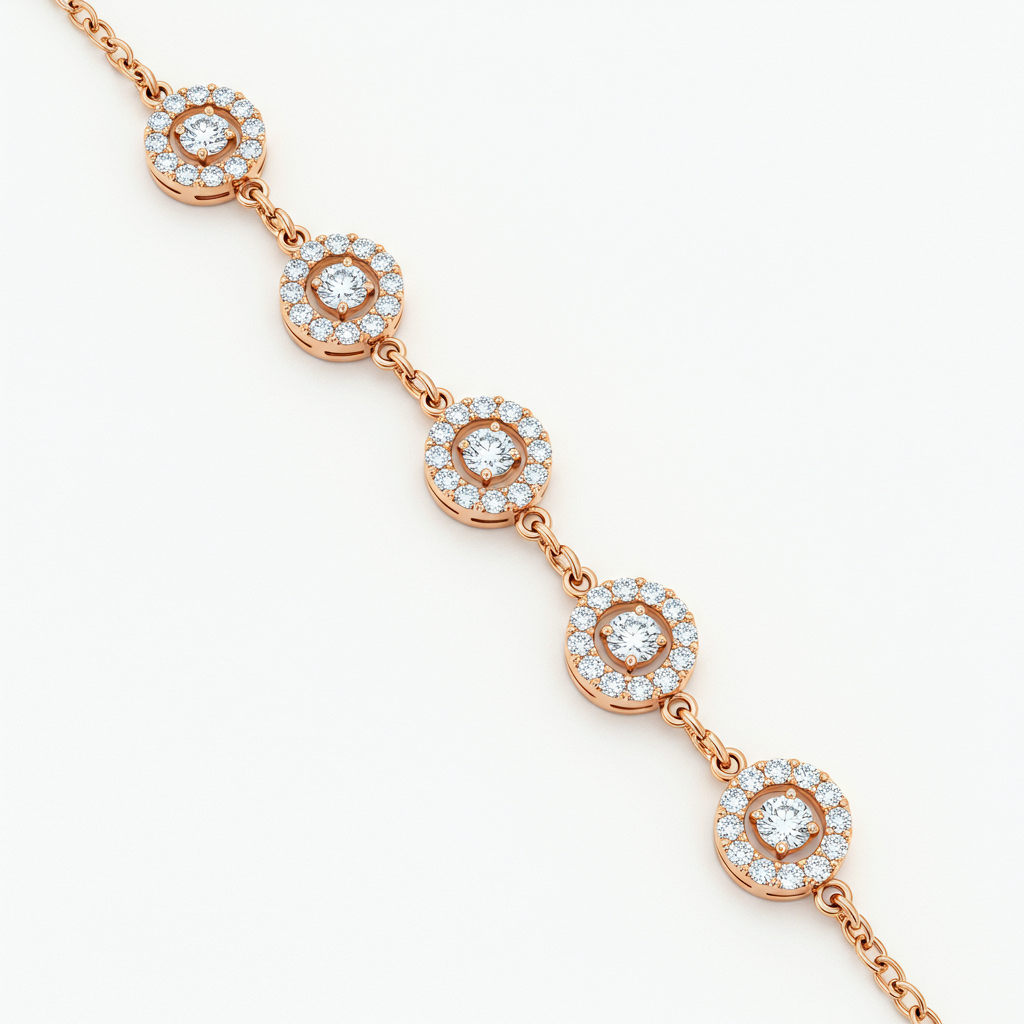 The 'hand bracelet for girls' is a testament to delicate elegance, expertly crafted in luminous 18KT Rose Gold. This slender chain features five petite, sparkling diamond-set motifs, creating an ethereal glow perfect for young wrists. Each VVS-clarity diamond is meticulously hand-set to maximize brilliance and fire. This timeless piece serves as a perfect gift, symbolizing grace and cherished memories.