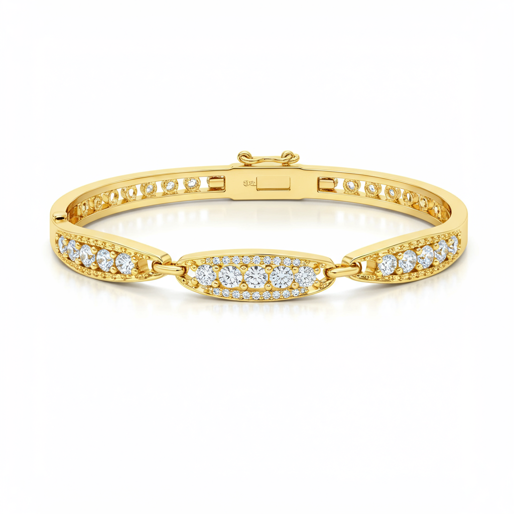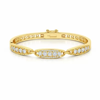 This elegant 18KT yellow gold bracelet captures contemporary grace perfect for everyday wear. Featuring a delicate chain link design punctuated by brilliant micro-pave diamond stations, it offers a subtle yet undeniable sparkle. The polished finish highlights the richness of the gold, ensuring a luxurious look. The secure adjustable clasp ensures a comfortable and personalized fit for young women. This is a timeless piece crafted to be cherished, making it an ideal gift for any stylish occasion.
