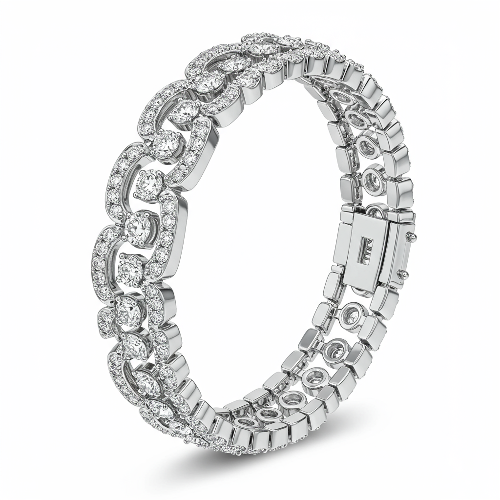 The caratlane bracelet embodies modern sophistication with its fluid, articulated design. Crafted in luminous 18KT white gold, this piece features numerous high-quality diamonds set meticulously to maximize brilliance and movement. It is designed to drape effortlessly around the wrist, offering continuous sparkle from every angle. This luxurious bracelet serves as a timeless statement piece, perfect for celebrating milestones or elevating everyday attire.