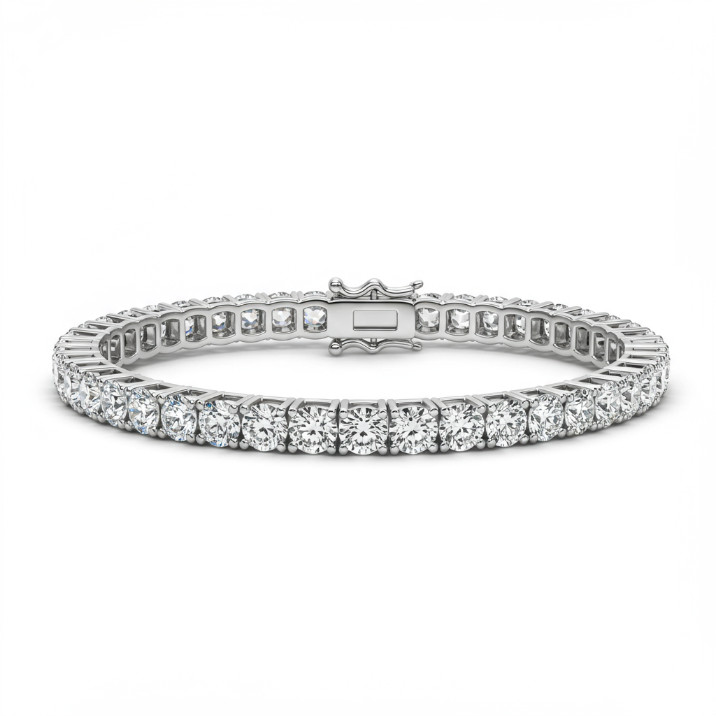 This exquisite ladies bracelet design epitomizes timeless elegance and modern craftsmanship. Crafted in luminous 18KT white gold, it features a continuous line of perfectly matched VVS round brilliant diamonds. The fluid, articulated links ensure exceptional comfort and movement on the wrist. This tennis bracelet serves as the ultimate statement piece, suitable for both grand occasions and elevated daily wear.