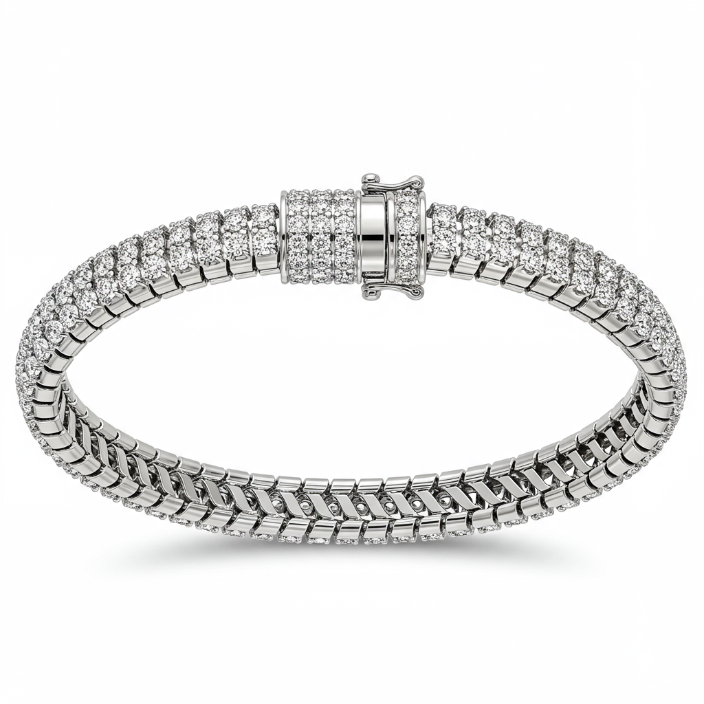 The Pandora Silver Bracelet reimagined in luxurious 18KT white gold offers a modern yet timeless foundation for personalized charm collections. This flexible chain features a secure clasp mechanism, meticulously paved with 1.25 carats of VVS diamonds that ensure breathtaking sparkle from every angle. It serves as the ultimate high-end canvas for displaying treasured memories and milestones through exquisite charms. This elegant and durable piece elevates the concept of everyday luxury jewelry.