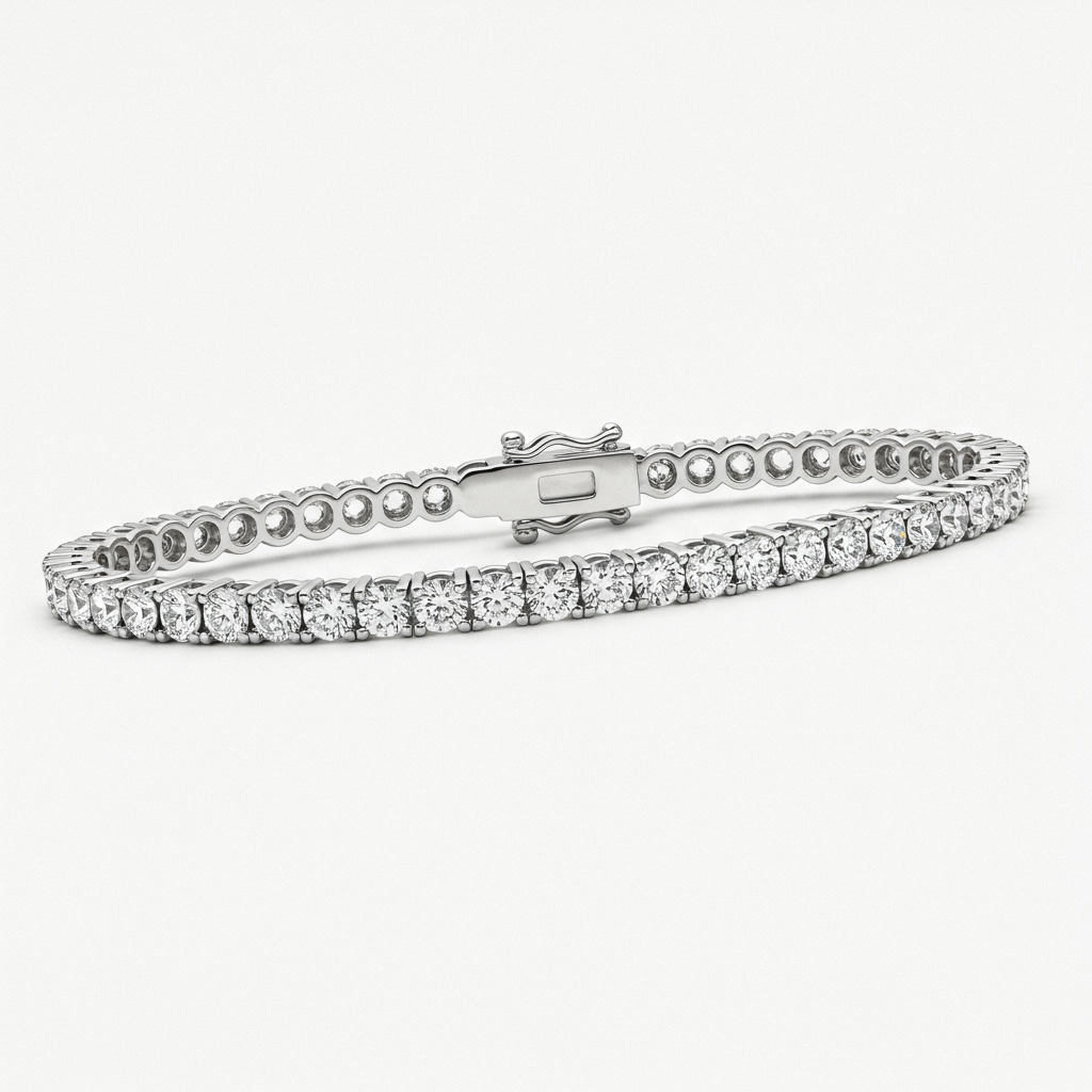 The quintessential piece of luxury jewelry, this tennis bracelet exemplifies timeless sophistication. It is meticulously crafted in 18KT white gold, showcasing a continuous line of perfectly matched, brilliant round diamonds. Each VVS clarity stone is secured in a flawless four-prong setting, ensuring maximum light return and sparkle. This bracelet is designed to drape elegantly around the wrist, offering a statement of unparalleled brilliance for every occasion.